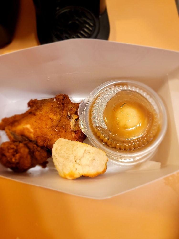 Part of our Taste of KFC Deals, this homestyle fried chicken meal includes 2 pieces of our crispy and juicy dark meat chicken (1 drum stick & 1 thigh), a side of our creamy mashed potatoes and gravy, and a buttery biscuit. Order online for delivery or pick up at a KFC near you for a quick lunch or dinner! (540-810 cal.)