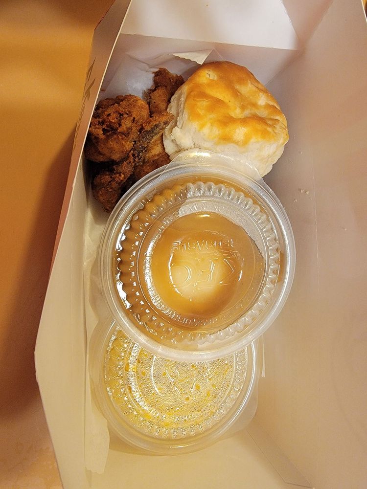 Includes 3 pieces of KFC's world famous fried chicken with Mike's Hot Honey sauce, choice of side, medium drink & biscuit. (1100-2180 cal.)